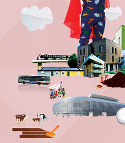 Création de l'affiche et de la carte de vœux de Lille Métropole - Pastille "2013" imprimée en Pantone 804 fluo / carte : cotillons - recherches graphiques